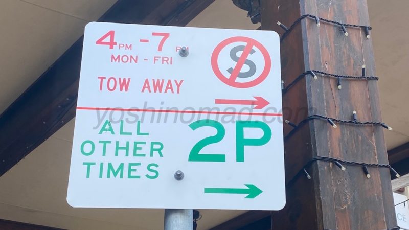 - MON-FRI 4PM-7PM = 平日16時〜19時はNo Stopping (停車禁止)