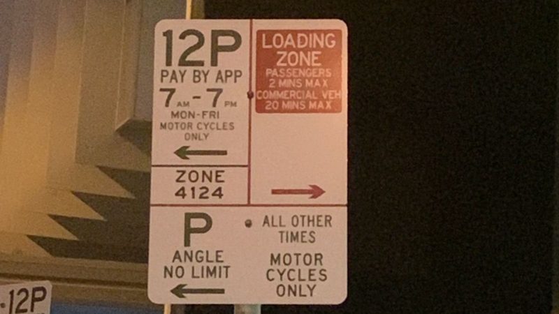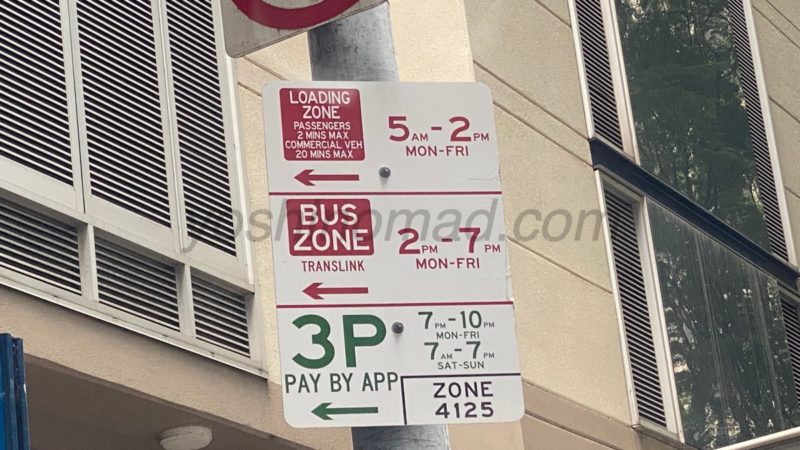 標識の右側は逆に制限が設定されていないので、終日Loading Zoneになっています。