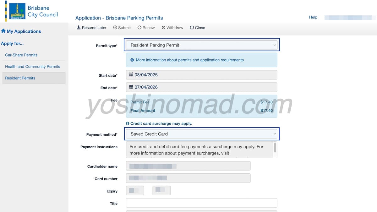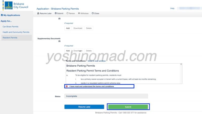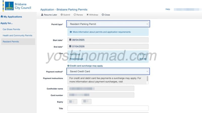 申請はブリスベン市の公式サイトからオンラインで行えます。