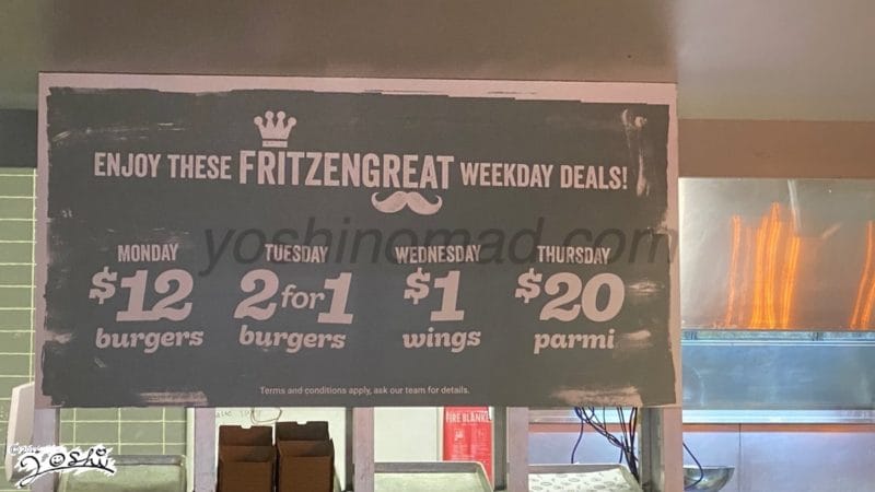 サウスバンク(South Bank)にあるFritzenbergerは、各曜日ごとにお得なフードディールを提供している人気バーガー店です。月曜の$10バーガーや火曜の2-for-1バーガー、そして水曜の$1ウィングなど、手頃な価格で美味しいバーガーやサイドを楽しめます。