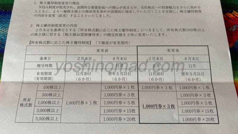 個人的には優待券の期限が半年と若干利用しにくい優待券です。